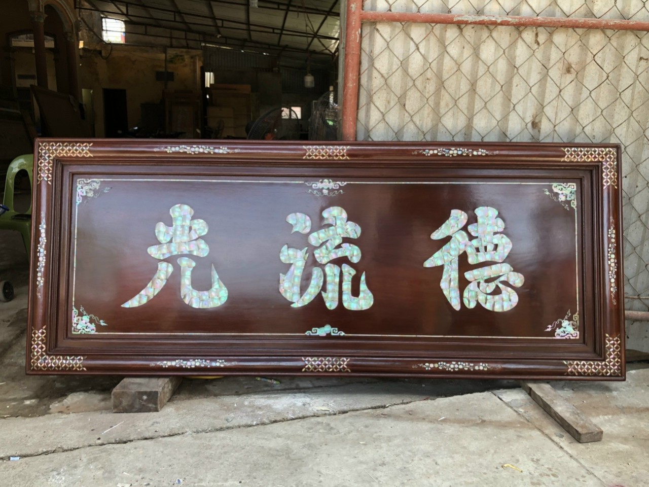 Bộ hoành phi câu đối chất liệu gỗ gụ và được khảm ốc Singapore giá 25 triệu LH 0945551382