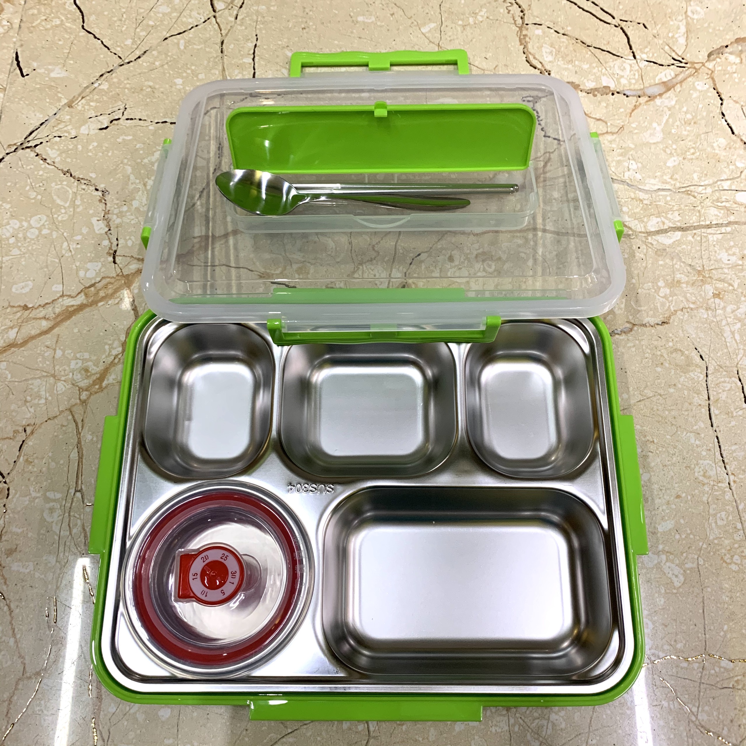Khay Đựng Cơm Inox Cao Cấp 5 Ngăn Sâu Lòng Hàn Quốc, Khay Đựng Cơm Văn Phòng, Xí Nghiệp Đảm Bảo Vệ Sinh Khay đựng cơm inox cao cấp 5 ngăn sâu lòng Hàn Quốc
