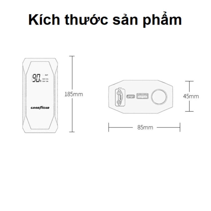 Mua tại TiktokBộ kích điện ô tô, kiêm pin sạc dự phòng Goodyear GY-5295 10000mAh - Hàng Nhập Khẩu Goodyear là một trong những công ty sản xuất lốp xe lớn nhất thế giới. Không chỉ nổi tiếng trong lĩnh vực sản xuất các loại lốp xe mà còn liên tục phát triển nghiên cứu các dòng sản phẩm phụ kiện cao cấp trang bị cho ô tô. Giới thiệu kích điện ô tô kiêm sạc dự phòng cao cấp Goodyear GY-5295, 10000mAh Giới thiệu kích điện kiêm pin sạc dự phòng Goodyear GY-5295