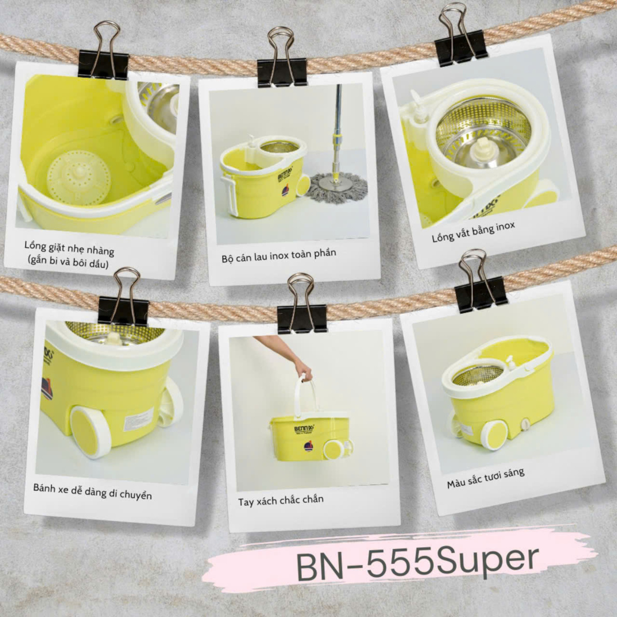 ✨Bộ lau nhà 360 Bennix cán inox: BN-555SUPER Hàng chính hãng
