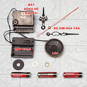 Máy Nhạc, Loa, Máy Đồng hồ Kim trôi, Bộ kim Hoa Văn, Bộ Ốc và Vòng khoen, 03 pin tiểu AA, Hộp đựng, Hướng dẫn tháo lắp Máy đồng hồ và Phiếu Bảo hành.