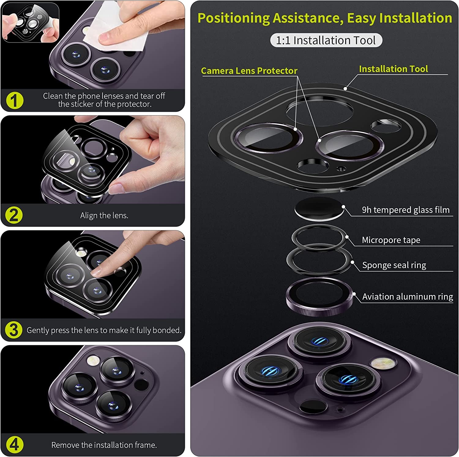 Bộ miếng dán kính cường lực bảo vệ Camera iPhone 12 Pro Max hiệu Wiwu Guard Lens Ring mang lại khả năng chụp hình sắc nét full HD (độ cứng 9H, chống trầy, chống chụi