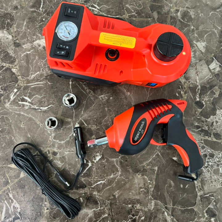Bộ nâng kích gầm điện, kiêm máy bơm lốp và máy siết ốc ô tô đa năng 3 trong 1
