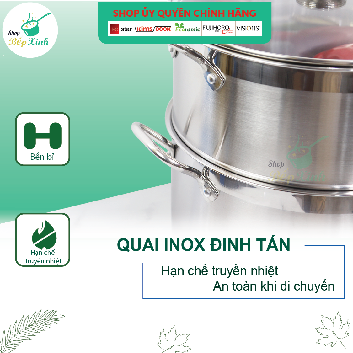 Đặc điểm nổi bật Cấu tạo 3 đáy truyền nhiệt nhanh, giữ nhiệt tốt, hạn chế cháy khét thực phẩm. Đường kính 30cm có xửng hấp nấu ăn đa năng: luộc gà, nấu canh, hấp Chất