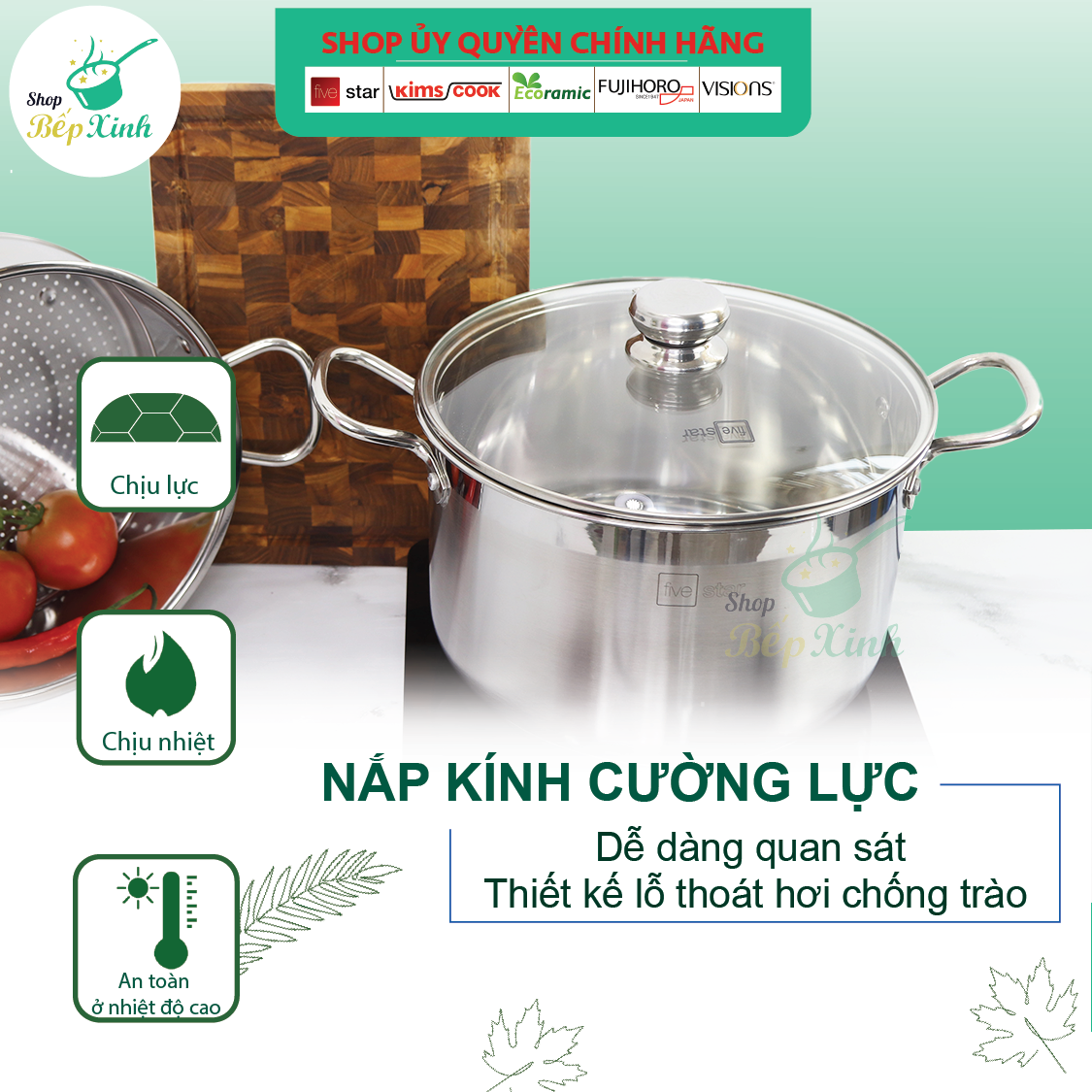 Bộ nồi xửng hấp Inox 3 đáy Fivestar 30cm bền đẹp, bảo hành 5 năm chuẩn hàng Việt Nam chất lượng cao