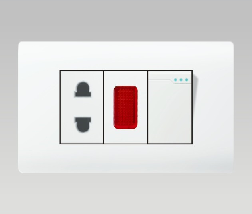 Bộ sản phẩm gồm 1 Hạt ổ cắm 2 chấu cỡ S 1 Hạt đèn báo cỡ S 0.5W 1 Hạt công tắc đơn 1 chiều cỡ S