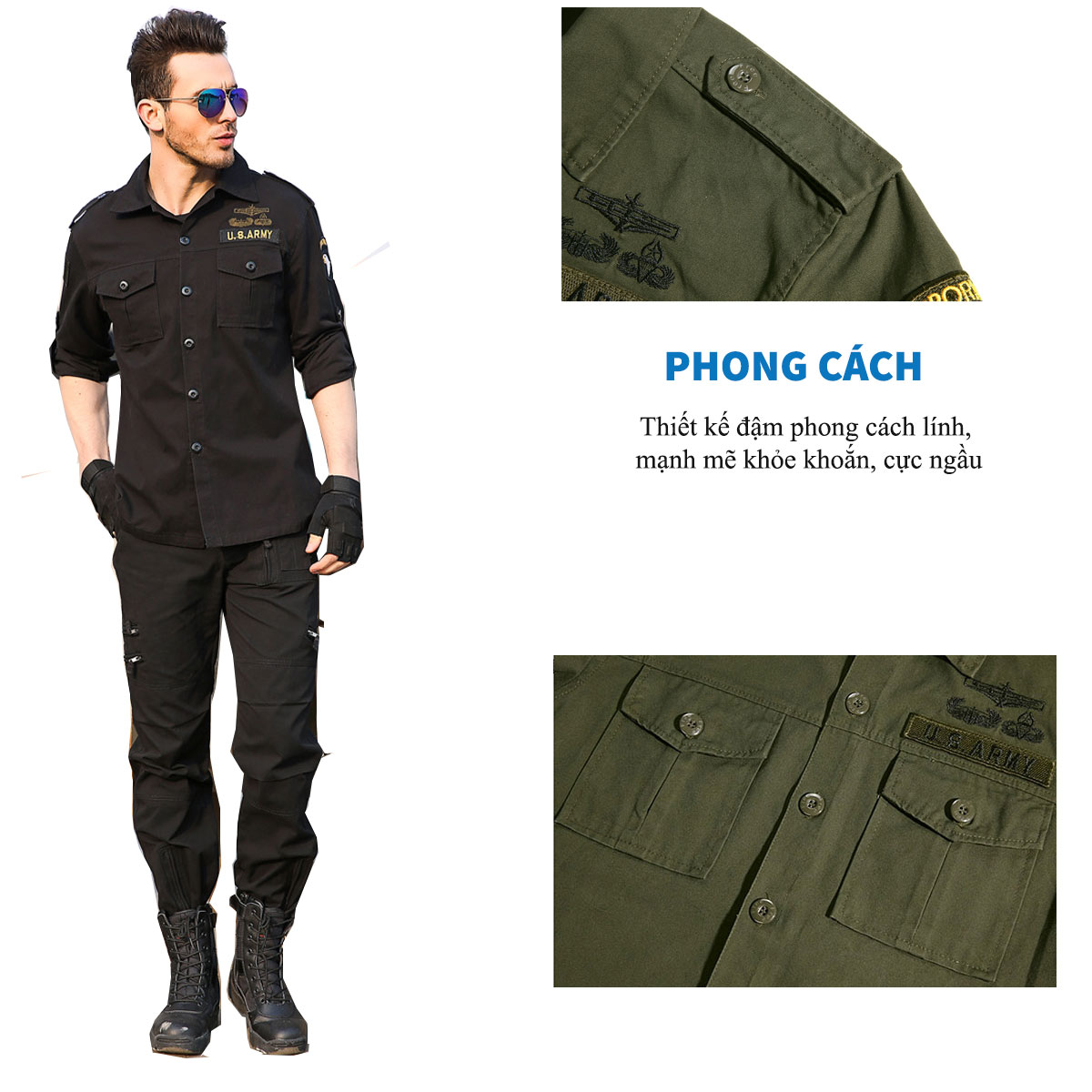 ✨Bộ Quần Áo Nam Lính Mỹ US ARMY Kiểu Dáng Túi Hộp, Chất Liệu Kaki Cao Cấp Phong Cách Lính Cực Ngầu (Tặng dây lưng) - HÀNG CHÍNH HÃNG