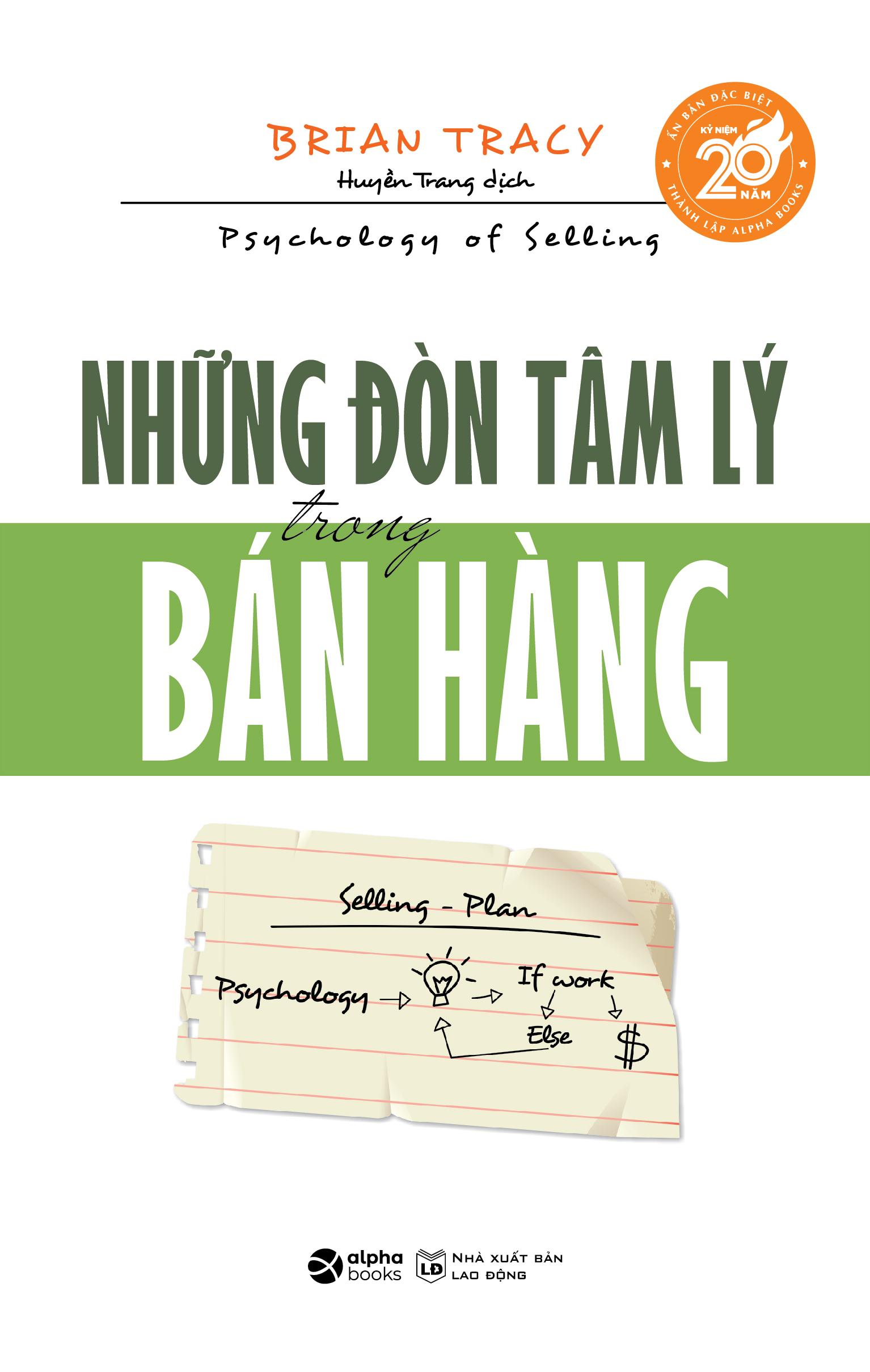 Những đòn tâm lý trong bán hàng chính là nghệ thuật bán hàng mà Brian Tracy, một doanh nhân thành đạt, đúc rút từ chính câu chuyện khởi nghiệp của cuộc đời ông. Trong bán hàng, bạn chỉ cần giỏi hơn và khác biệt chút đỉnh trong mỗi công đoạn để tích lũy và dần tạo nên một khác biệt lớn về thu nhập. Nếu bạn là người bán hàng mà lại sợ bị từ chối, bạn đã chọn sai cách kiếm sống.