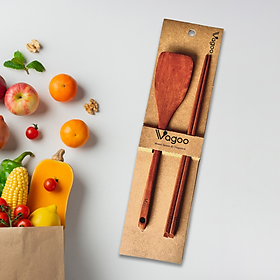 ✨Bộ Sạn & Đũa Bằng Gỗ Nhãn Tự Nhiên - VAGOO - Làm Thủ Công Chống Thấm, Chống Ẩm Mốc, An Toàn Cho Sức Khoẻ