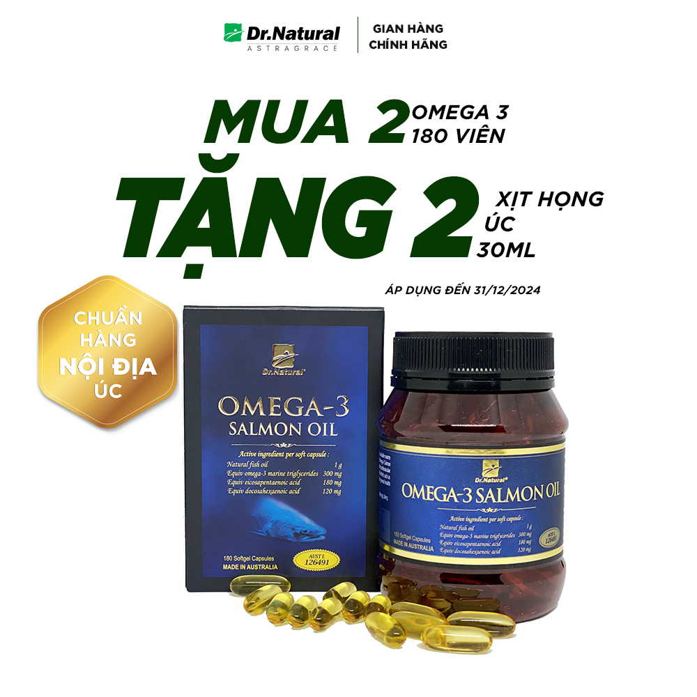 Thực phẩm bảo vệ sức khỏe COMBO 2 HỘP VIÊN DẦU CÁ HỒI DR NATURAL OMEGA3 SALMON OIL + Dùng được 6 tháng liên tục. + Hiệu quả hơn với hàng nhập khẩu chính hãng
