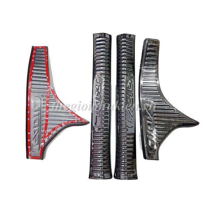 Bộ ốp bậc cửa trong ngoài nẹp bước chân Rush 2018-2019-2020 vân Titan chống trầy trang trí xe ✯ ✯ ✯ Đặc Điểm: ️ Bề mặt phủ sơn bóng tạo độ sáng bóng sang trọng
