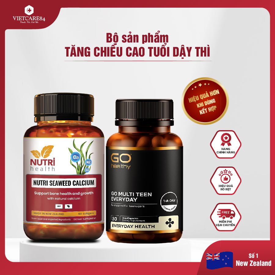 Mua tại TiktokBỘ SẢN PHẨM GIÚP TRẺ TĂNG CHIỀU CAO TUỔI DẬY THÌ GỒM: +1 hộp Viên uống Canxi hữu cơ New Zealand Nutri Seaweed Calcium 60 Viên - dùng 1 tháng +1 hộp viên đa vitamin GO Multi Teen Every Day (30 viên) - dùng 1 tháng KHUYÊN DÙNG: MUỐN TĂNG CHIỀU CAO TUỔI DẬY THÌ CHO TRẺ NÊN BỔ SUNG BỘ SẢN PHẨM TĂNG CHIỀU CAO 1 NĂM 2-3 ĐỢT - MỖI ĐỢT 1-2 THÁNG CHI TIẾT SẢN PHẨM: