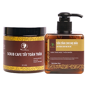 ✨Bộ tắm và tẩy tế bào chết toàn thân Wonmom ( 1 Scrub café tẩy toàn thân + 1 Sữa tắm cho mẹ )
