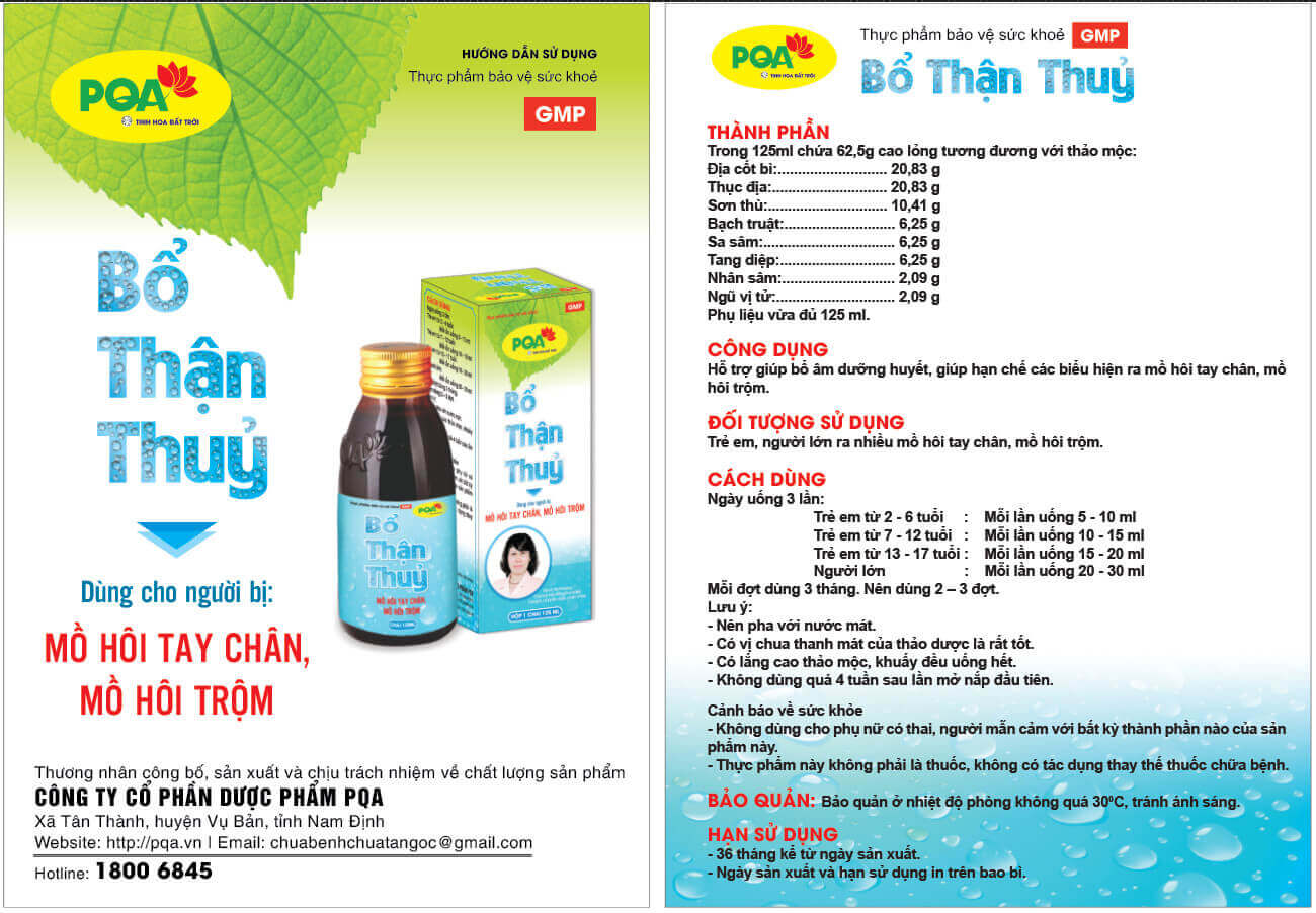 Sản phẩm bổ thận thủy PQA - Điều trị mồ hôi trộm LH 0989259880