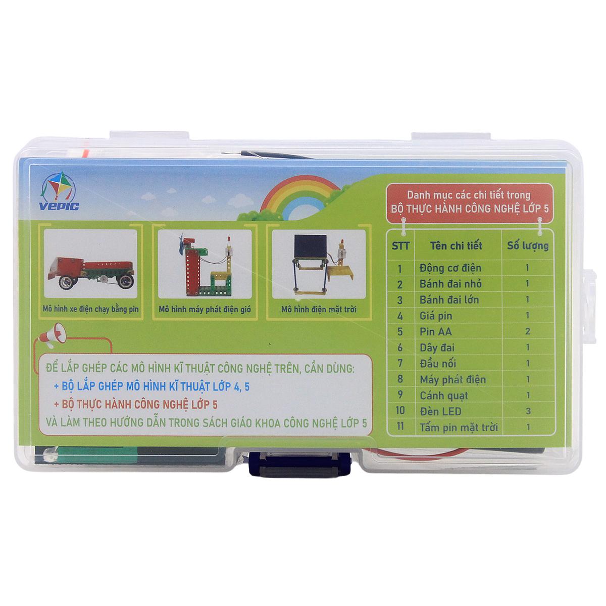 Bộ Thực Hành Công Nghệ Lớp 5 - Vepic Bộ thực hành công nghệ lớp 5 gồm các thiết bị điện, điện tử. Được sản xuất theo Thông tư số 37/2021/TT-BGDĐT và phù hợp với