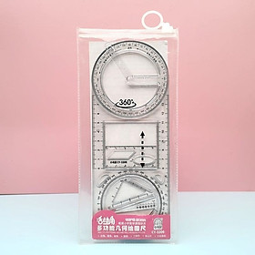 Bộ Thước Kẻ Đa Năng Dễ Sử Dụng Xoay 360 Độ: Màu sắc: Trong suốt Kích thước: 8.4 x 21.7cm - Thước đa năng vẽ được hình tròn, hình chữ nhật và hình tam giác,