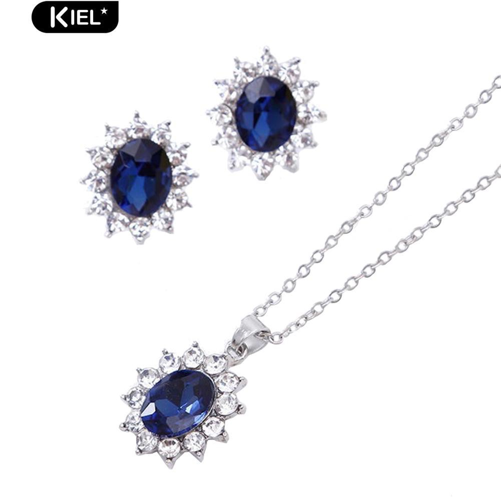 Chất liệu: 30% bạc xi bạch kim Kích thước: Dây chuyền dài 45cm, mặt dây xấp xỉ: 1,45x2,25mm Bông tai xấp xỉ: 1,6x1,4mm Bộ trang sức món hoa nạm đá BHB67 - Chất liệu: 30%