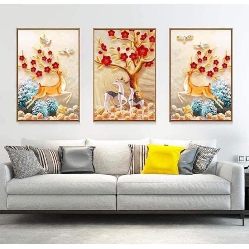 - Bộ sản phầm gồm: bộ tranh gắn móc + móc treo tranh Tranh thiết kế ốp sát tường khi treo, tạo cảm giác ảnh nổi 3D trên nền tường. Kích thước 40x60cm 1 tấm, 3 tấm cao 60cm, dài 1,2m