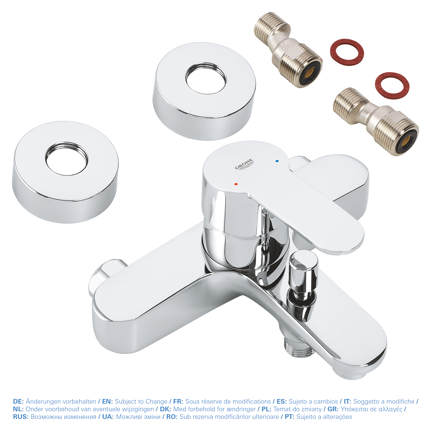 - Đơn vị: Bộ BỘ TRỘN NỔI GROHE EUROSTYLE COSMOPOLITAN 2 CHẾ ĐỘ SEN TẮM VÀ VÒI XẢ BỒN VỚI THIẾT KẾ ĐỘC ĐÁO VÀ TIỆN LỢI HOÀN CHỈNH CHO PHÒNG TẮM HIỆN ĐẠI. Thiết kế đẹp với những đường cong tự nhiên, bộ trộn sen tắm GROHE Eurostyle Cosmopolitan mang lại vẻ đẹp hoàn hảo, phù hợp với nhiều phong cách thiết kế phòng tắm. Được ứng dụng những công nghệ tiên tiến của GROHE và kỹ thuật của Đức, bộ trộn gắn tường này mang lại trải nghiệm đẳng cấp khi vận hành. Việc kiểm soát lượng nước và nhiệt độ chính xác và dễ dàng nhờ công nghệ GROHE SilkMove. Trong khi đó lớp mạ chrome GROHE StarLight sáng bóng, dễ lau chùi, chống trầy xước và giữ được vẻ bền đẹp trong nhiều năm sử dụng. Đảm bảo sự thoải mái và tiện dụng trong phòng tắm nhờ vào bộ chuyển đổi chế độ tiện dụng giúp bạn dễ dàng thay đổi chế độ bồn tắm và vòi sen. Ngoài ra, sản phẩm còn có một bộ giới hạn tốc độ dòng chảy có thể điều chỉnh được giúp bạn tiết kiệm nước và chi phí. Bạn chỉ cần chọn thêm sen tay GROHE để tạo ra trải nghiệm tắm vòi sen đẳng cấp từ GROHE. GROHE Eurostyle Cosmopolitan - một cách nâng cấp phòng tắm nhanh chóng, kết hợp giữa thiết kế phong cách và hiệu suất hoạt động. Sản phẩm gồm: