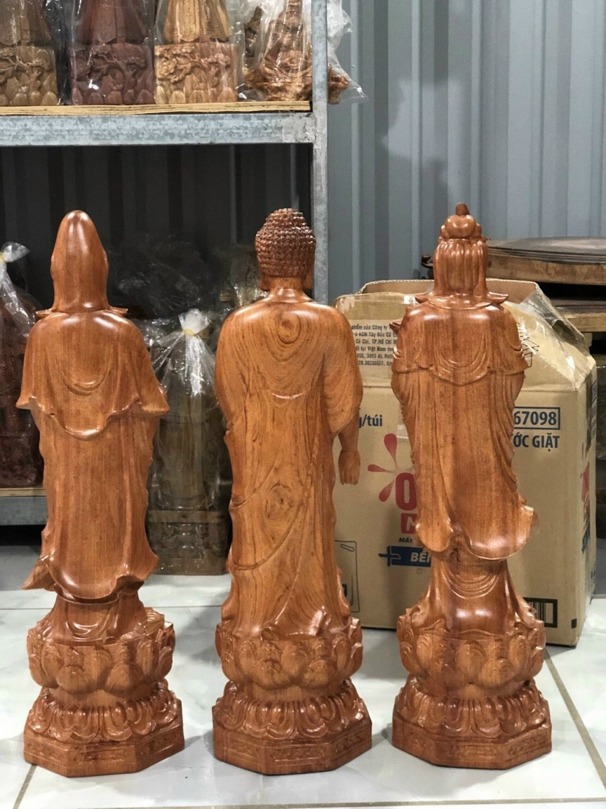 Cách lập ban thờ Tây Phương Tam Thánh. Bộ tượng Tam Thánh Phật đứng cao 60cm gỗ hương đá