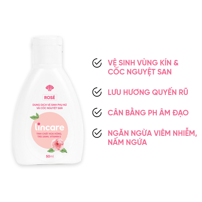 Dung dịch vệ sinh Lincare Rose được chiết xuất từ búp trà non, tinh chất hoa hồng và Vitamin E giúp ngăn ngừa vi khuẩn, khử mùi, đồng thời giữ cân bằng độ pH.