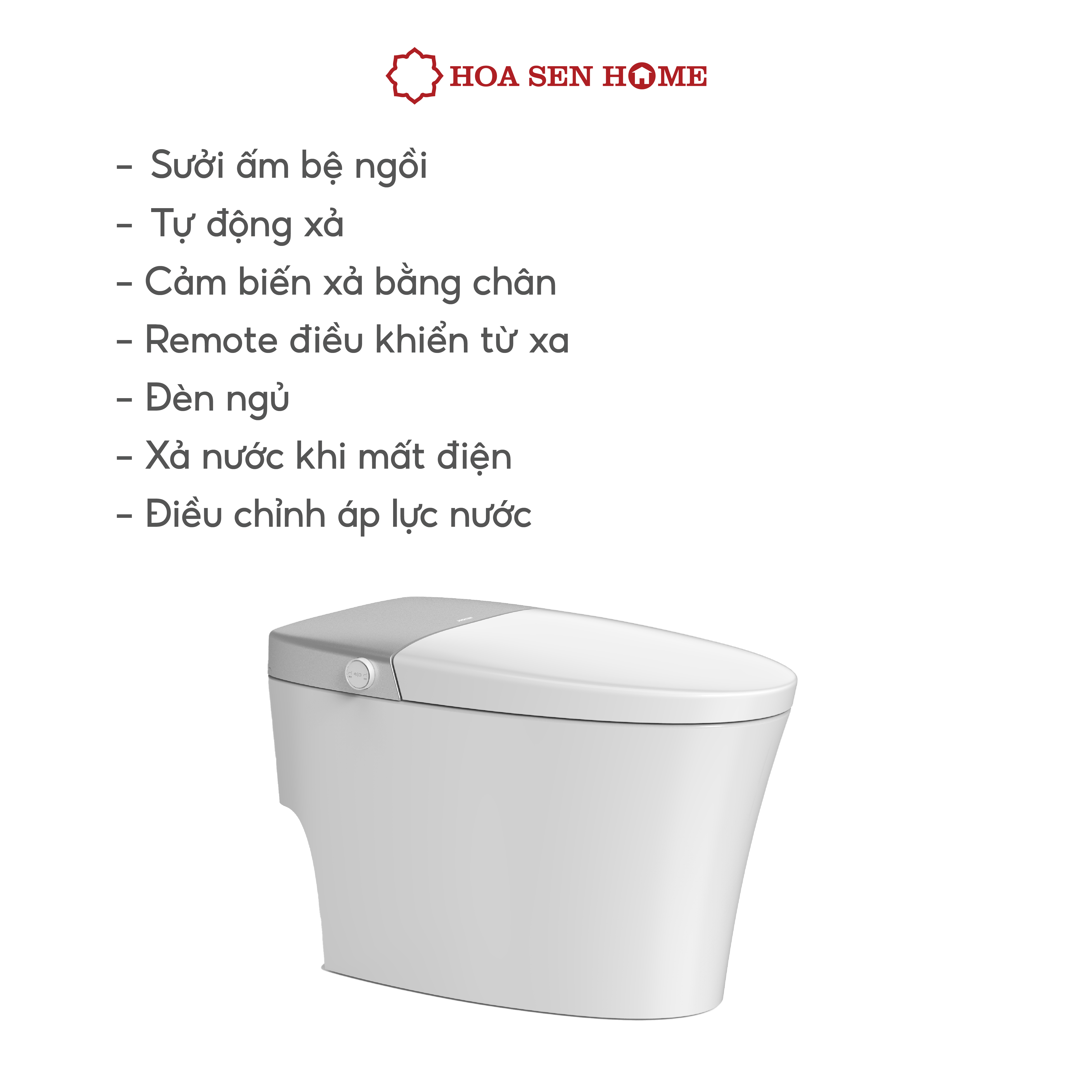 - Bồn cầu thông minh hoàn toàn tự động - Kiểu dáng: Bồn cầu đặt sàn sang trọng và đẳng cấp - Công nghệ FFC hiện đại, vật liệu từ cao lanh chất lượng cao