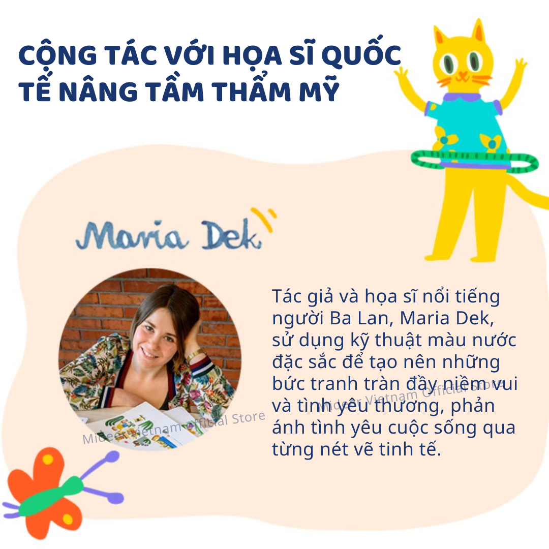 - CỘNG TÁC VỚI HỌA SĨ QUỐC TẾ, NÂNG TẦM THẨM MỸ Maria Dek, tác giả và họa sĩ nổi tiếng người Ba Lan, sử dụng kỹ thuật màu nước đặc sắc để tạo ra những bức tranh ngập tràn niềm vui và tình yêu thương. Từng tác phẩm của bà là sự phản ánh tình yêu với cuộc sống qua những nét vẽ tinh tế.