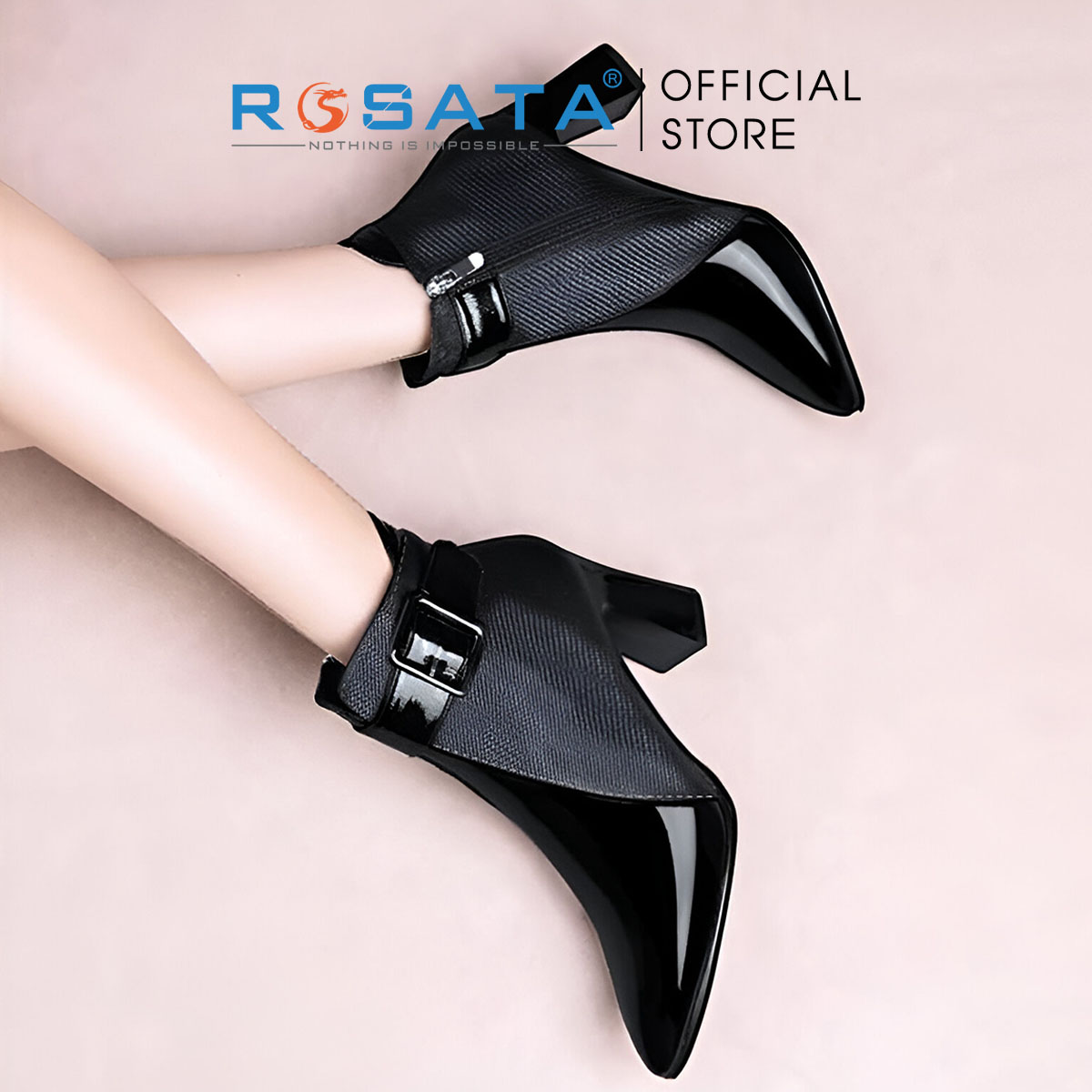 ROSATA - thương hiệu giày thời trang nữ cao cấp THUẦN VIỆT NHƯNG CHẤT LƯỢNG QUỐC TẾ ------------------ Giày bốt nữ cổ thấp gót cao 8p RO607 ROSATA tại BCASHOP màu đen thiết kê đơn