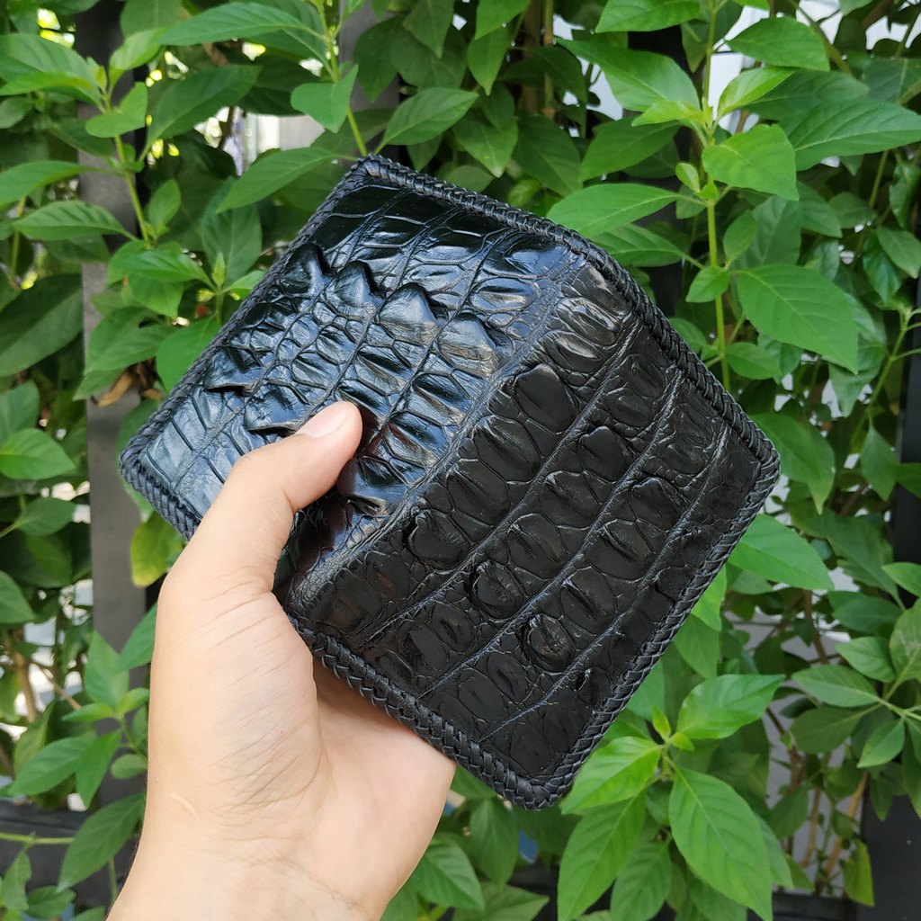 Bóp nam nguyên bàn tay cá sấu. 2 mặt da cá sấu đan viền thủ công VS2V03N