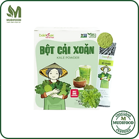 THÔNG TIN SẢN PHẨM BỘT CẢI XOĂN – BỘT CẢI KALE: - Khối lượng: 60g (20 gói x 3g). - Thành phần: 100% nguyên chất từ rau cải xoăn tươi. - Xuất xứ: Việt Nam.