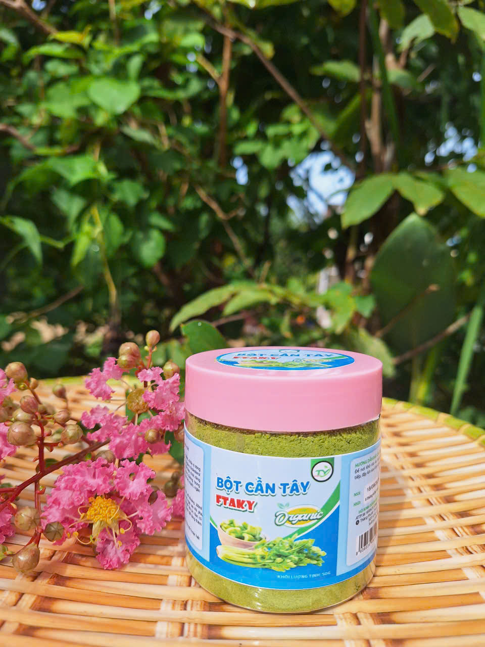 - Ngoài ra, bột cần tây còn dùng trong các món trộn, soup, canh, sữa chua, dùng đắp mặ và nhiều công thức khác. CÔNG DỤNG CỦA BỘT CẦN TÂY: Giảm cân: Loại nước này rất ít calo và cũng giúp bạn no lâu. Do đó, bạn sẽ dễ dàng kiểm soát cơn thèm ăn và giảm cân. Giúp đẹp da: Cần tây có nhiều nước vì 95% trọng lượng của cần tây là nước. Do đó, uống loại nước ép này thường xuyên không những có thể giúp bạn đáp ứng nhu cầu nước hàng ngày mà còn giữ cho tế bào da đủ ẩm. Khi được cấp ẩm thường xuyên, làn da mềm mại và căng mịn hơn. Nhờ chứa nhiều vitamin giúp sản sinh collagen nuôi dưỡng da. Giúp ngủ ngon: Hàm lượng magie cũng như tinh dầu trong nước ép có tác dụng làm dịu thần kinh. Nhờ đó, bạn có thể thư giãn và tận hưởng giấc ngủ ngon. Giúp mái tóc mềm mượt do cần tây chứa nhiều nước và vitamin A rất tốt cho tóc. Ngừa rối loạn tiêu hóa và giúp nhuận tràng rất tốt vì loại nước ép này chứa rất nhiều chất xơ. Ngừa vôi hóa, giúp ngăn chặn quá trình vôi hóa trong túi mật, bàng quang và thận. Giúp lợi tiểu, Ngừa ung thư rất tốt, Giảm cholesterol một cách tự nhiên. Kiểm soát huyết áp. QUY TRÌNH SẢN XUẤT BỘT CẦN TÂY : Nguyên liệu sản xuất bột cần tây sấy lạnh được trồng theo hướng hữu cơ, không sử dụng phân bón hóa học, thuốc trừ sâu hay các loại hóa chất độc hại. Cần tây sau khi thu hoạch, được mang đi sơ chế và sấy lạnh theo công nghệ Nhật Bản , giúp rau giữ nguyên hàm lượng dinh dưỡng, màu sắc và hương vị. Bột cần tây sấy lạnh của cam kết không sử dụng phẩm màu, không hương liệu, không biến đổi gen, chất bảo quản hay đường tinh luyện THÔNG TIN SẢN PHẨM BỘT CẦN TÂY: