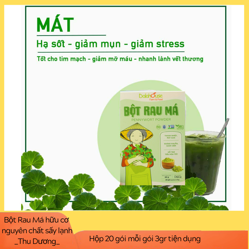Đặc biệt rau má tại nông trại Dalahouse thơm đậm vị đặc trưng của giống rau má lá nhỏ, hạt giống chuẩn organic được nhập từ Mỹ. Rau được kiểm soát chặt chẽ từ khâu trồng đến khâu chế biến.