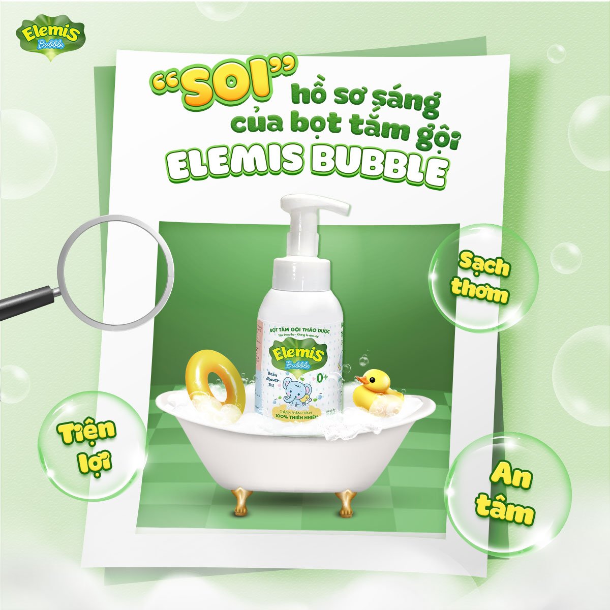 Bọt tắm gội thảo dược Elemis Bubble với các chiết thảo dược thiên nhiên từ Đu đủ, Ngải cứu, tinh dầu Màng tang, tinh dầu Mùi, tinh dầu Tràm gió, tinh dầu Sả chanh. Bọt tắm gội thảo dược Elemis Bubble có tác dụng làm sạch, dưỡng ẩm và bảo vệ bé trước các vấn đề về da thường gặp như rôm sảy, hăm tả, mẩn ngứa, mụn nhọt…