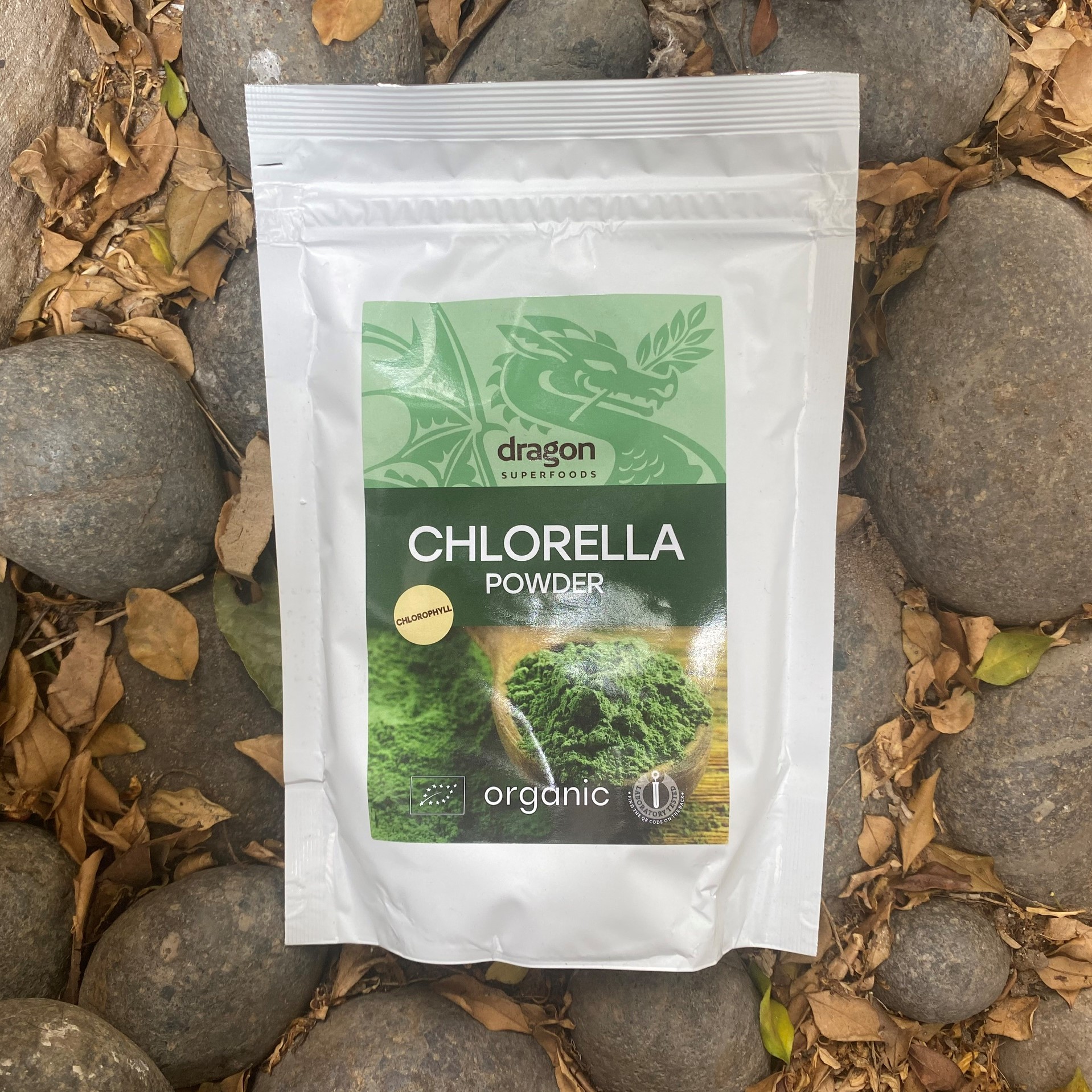 Bột tảo lục của Dragon Superfoods được sản xuất bởi loài tảo xanh lục đơn bào Chlorella Vulgaris và có nguồn gốc từ một hòn đảo ở Biển Đông Trung Quốc. Sản phẩm của chúng