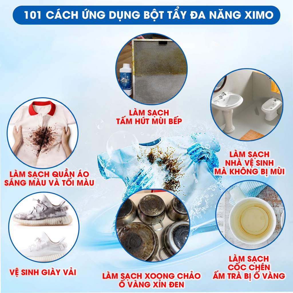 - Có quá nhiều vết bẩn khác nhau trong sinh hoạt hàng ngày đặc biệt quần áo và đồ dùng của bạn, sẽ rất tốn rất nhiều chi phí để xử lý cho từng loại vết bẩn nhưng không hiệu quả và gây mùi không tốt cho sức khỏe, nắm bắt được điều đó, Ximo Home ra mắt bột tẩy vết bẩn đa năng Oxi Clean đánh bay tất cả các loại vết bẩn cứng đầu