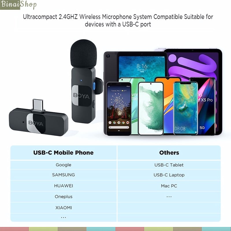 Mua tại TiktokBoya BY-V là dòng micro cài áo không dâ sử dụng sóng 2.4GHz, với thiết kế nhỏ gọn hoạt động ổn định trong phạm vi lên đến 50m, tương thích nhiều thiết bị phù hợp live stream, vlogging, dạy học, quay tik tok, youtube... TÍNH NĂNG CƠ BẢN