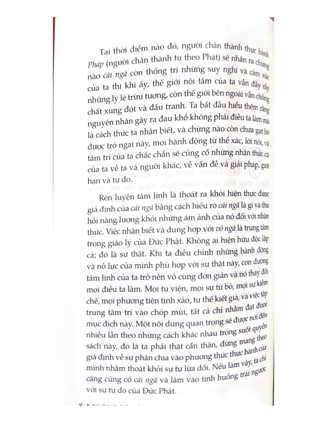 “Quyển sách này được viết ra như là cẩm nang cho những người thực hành quan tâm đến sự tự do trong thông điệp của đức Phật hơn là tư tưởng thuần túy. Chỉ có ta không nhìn thấy tính thống nhất chứ nó không bao giờ rời bỏ ta.”