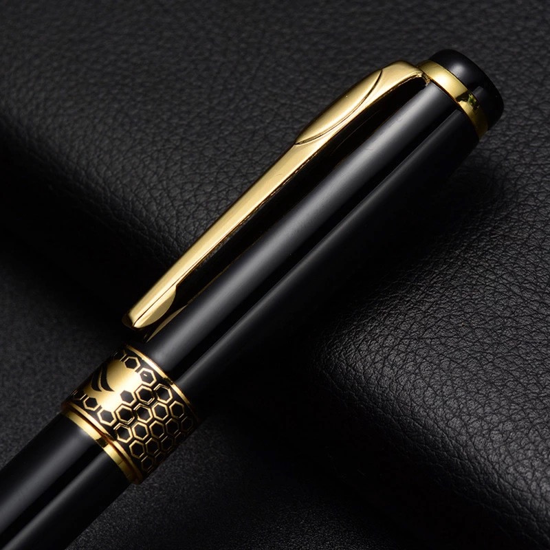Mua tại TiktokBút ký viết gel thân hợp kim được sơn màu đen điểm nhấn vàng Baoer 68. Phối hợp 2 màu đen bóng điểm nhấn màu vàng hợp kim họa tiết như chạm khắc .