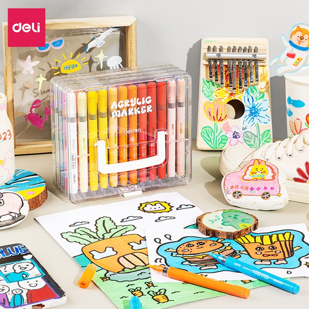 Bút Marker Deli 60 Màu EC189-60 (Hộp 60 màu) Đa dạng chất liệu vẽ: có thể sử dụng bút này để viết trên nhiều loại chất liệu khác nhau như vải, giấy, thủy tinh, vỏ