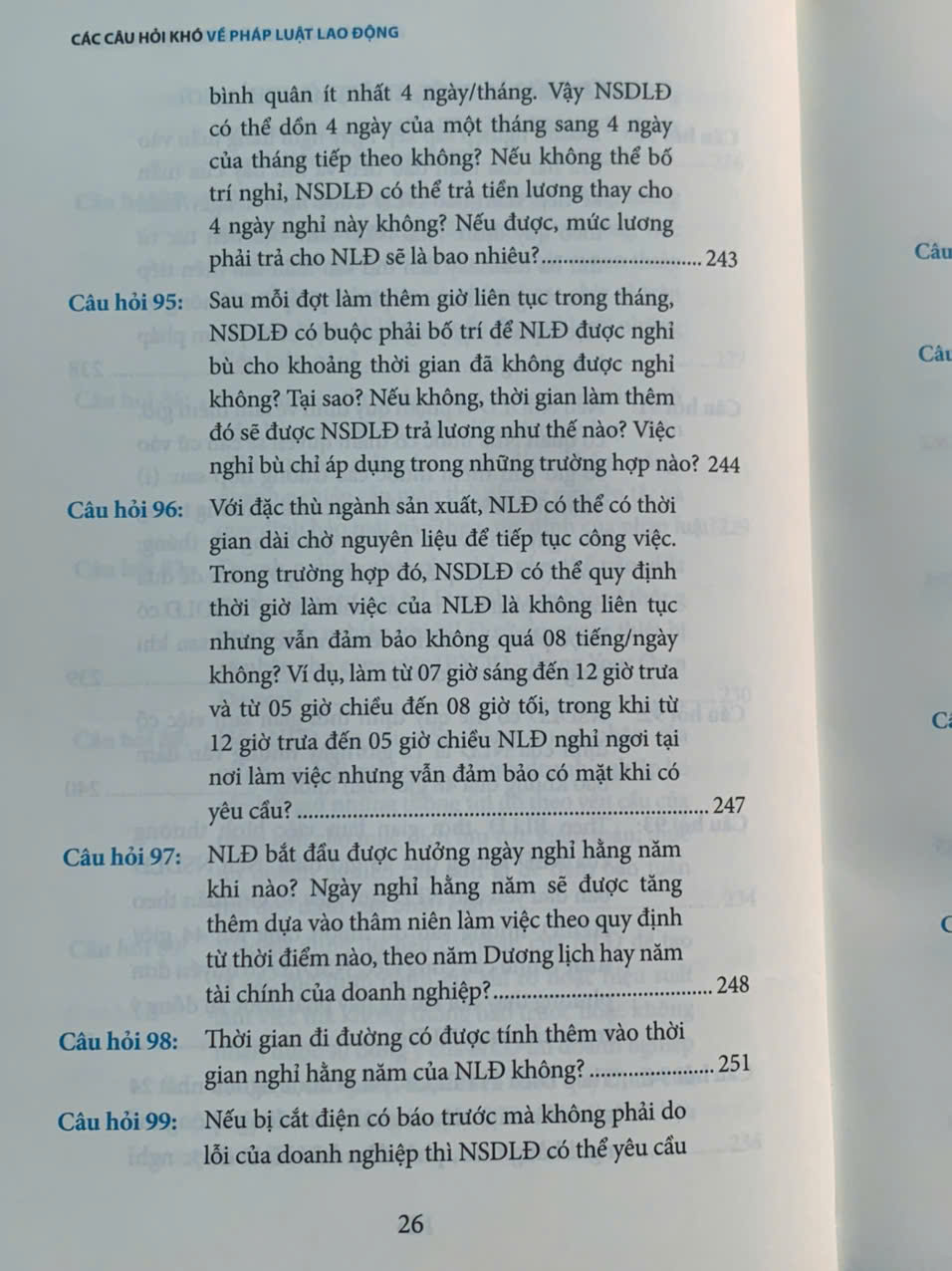 Quyển sách này được biên soạn dựa trên những quy định mới nhất của pháp luật lao động Việt Nam tại thời điểm xuất bản và thực tiễn áp dụng tại doanh nghiệp, nhằm giúp doanh nghiệp không chỉ tuân thủ pháp luật mà còn đáp ứng các yêu cầu tuân thủ khắt khe của các cơ quan quản lý lao động. Sách này được xây dựng dựa trên nguyên tắc “Quy định pháp luật + Lý luận + Thực tiễn + Tình hình thực tế tại doanh nghiệp”. Tuy nhiên, khi nhìn từ những góc độ khác như cơ quan quản lý Nhà nước, các tổ chức bảo vệ người lao động, hay từ góc độ nghiên cứu học thuật, cách tiếp cận các câu trả lời có thể khác đi.