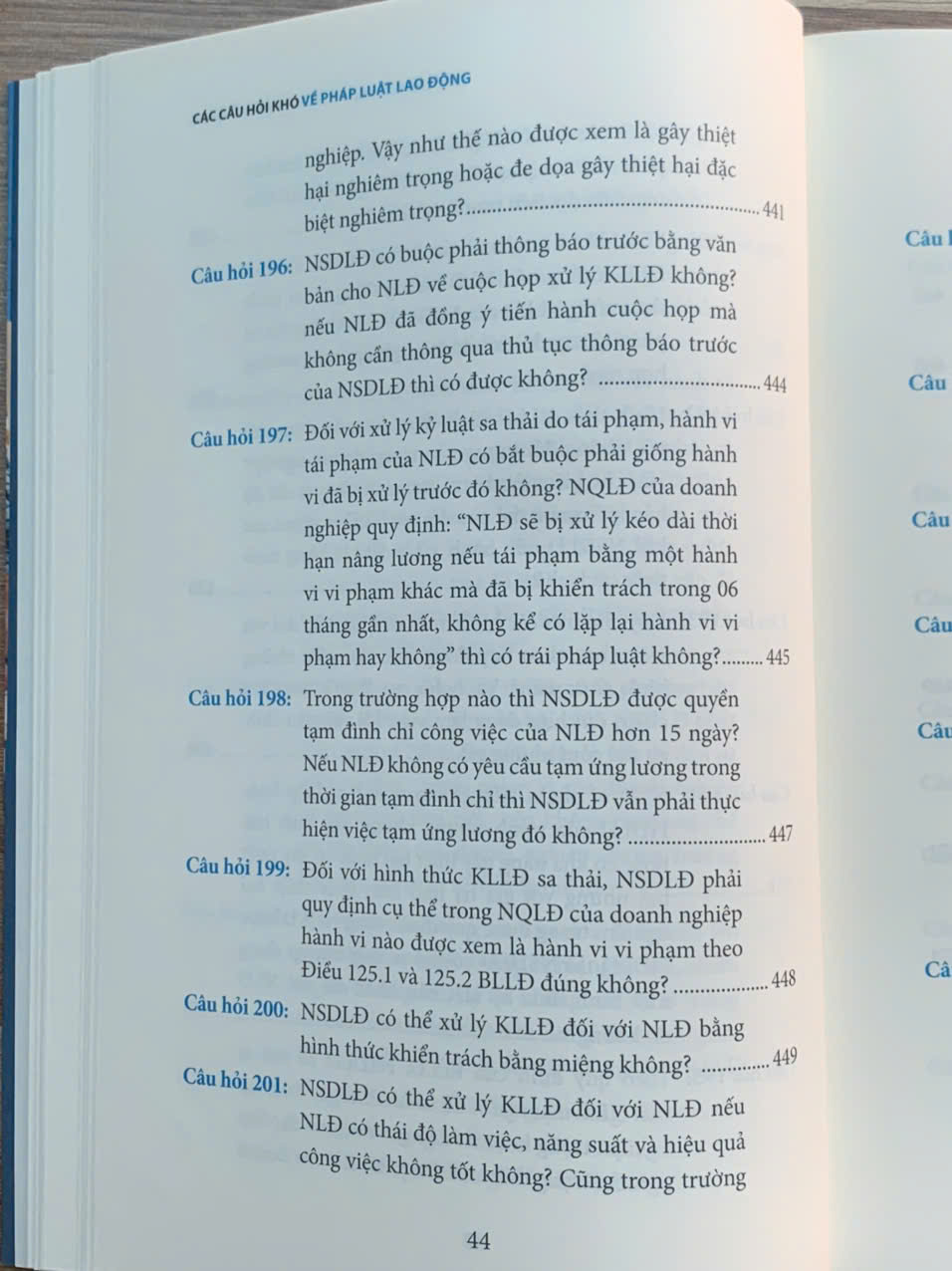 Các câu hỏi khó về pháp luật lao động Tác giả: Luật sư Nguyễn Hữu Phước Nhà xuất bản: Tổng Hợp Thành Phố Hồ Chí Minh Khổ sách: 15,5*23cm Công ty phát hành: Công ty