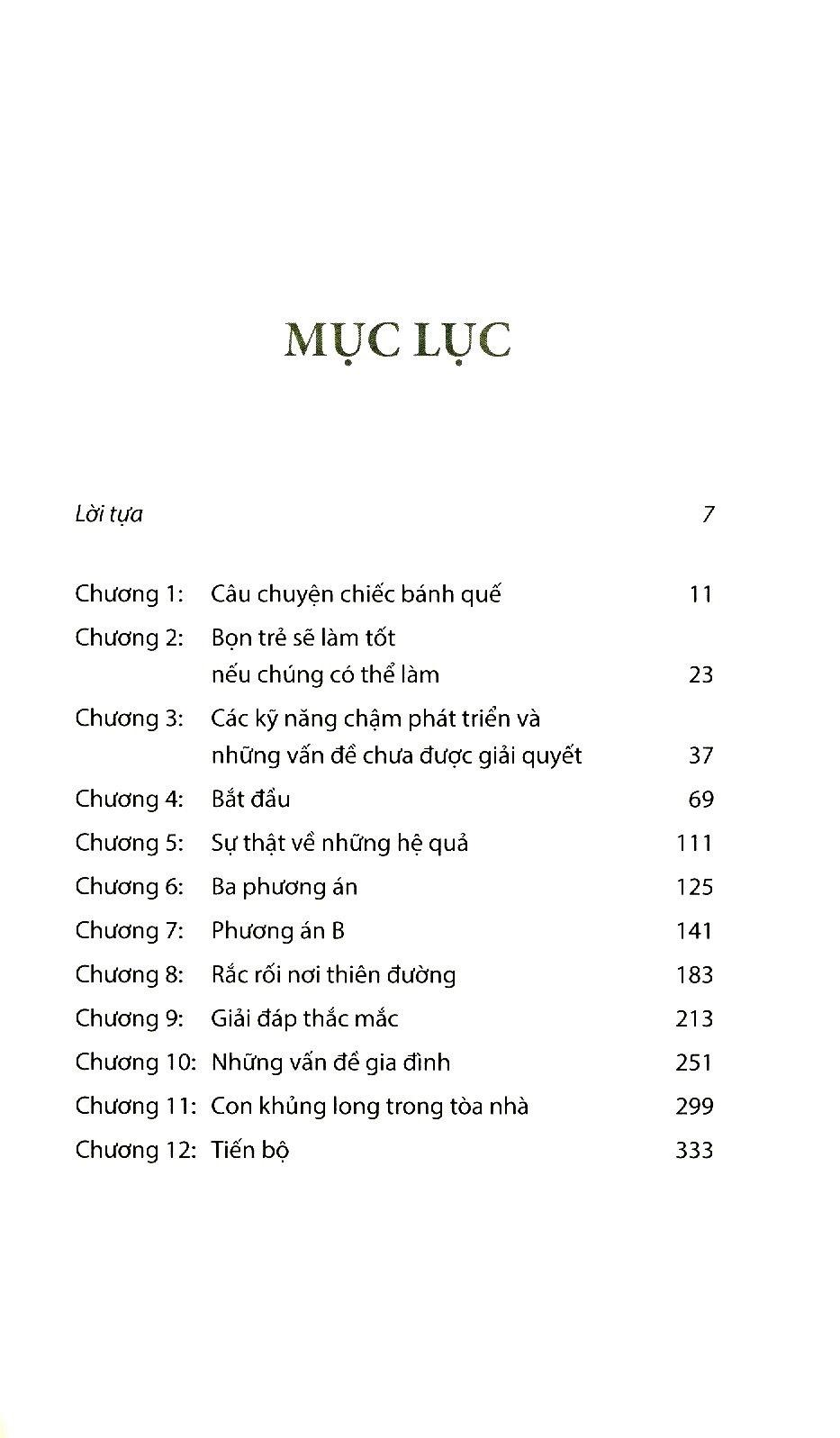 Qua các chương đầu, bạn sẽ xác định đặc điểm tính cách của trẻ có hành vi thách thức – như bướng bỉnh, gian dối, lôi kéo sự chú ý, thăm dò các giới hạn, chống đối, không thỏa hiệp, thờ ơ – đều không chính xác và mang nặng thành kiến. Bạn cũng sẽ đọc được vô số điều mà chúng ta thường nói về những cha mẹ có con như thế – họ là những người thụ động, buông lỏng kỷ luật, thiếu kiên định, không rõ ràng, có những nguyên tắc không phù hợp – cũng đều không đúng và không hữu hiệu. Ngoài ra, bạn sẽ học được (hoặc có thể bạn cũng đã biết) là các chẩn đoán về tâm bệnh lý khác nhau thường về trẻ có hành vi thách thức không hề mang lại cho chúng ta những thông tin cần có để hiểu chính xác những khó khăn của trẻ và từ đó có phương pháp hiệu quả để giúp đỡ trẻ.