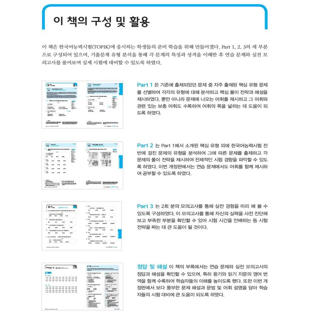 Thi thử như thật bằng đề thi thử có kèm theo phần giải thích song ngữ Hàn-Việt ở Phụ lục nhằm chuẩn bị hoàn hảo cho kỳ thi TOPIK.