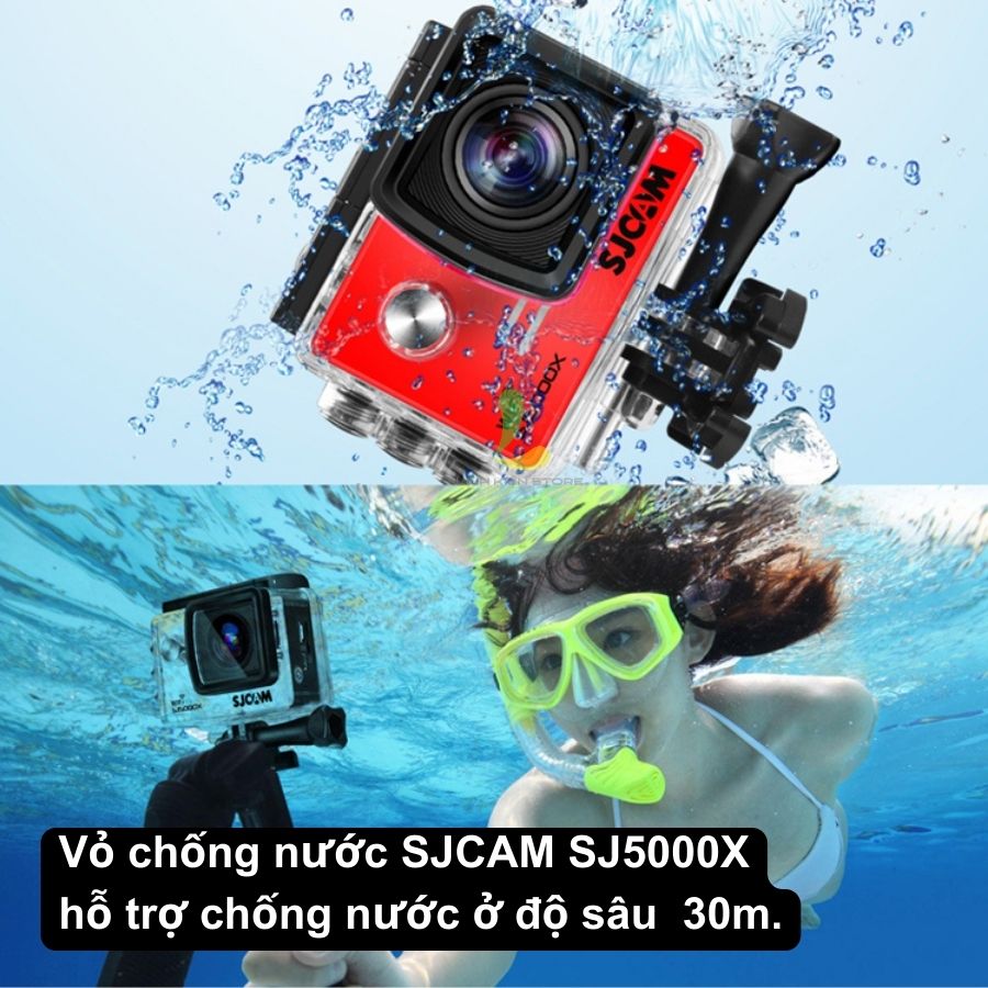 Với thiết kế nhỏ gọn, chắc chắn camera phượt SJCAM SJ5000X có thể quay phim, chụp ảnh dưới nước dưới độ sâu 30m nhờ vỏ bảo vệ chống nước. Ngoài ra, khi bạn mang chiếc camera này đi du lịch, bạn cũng không phải lo lắng khi khả năng chống sốc của máy là khá tốt. Nhà sản xuất cũng tặng kèm khá nhiều phụ kiện để bạn dễ dàng gắn và sử dụng camera cho nhiều tình huống khác nhau.