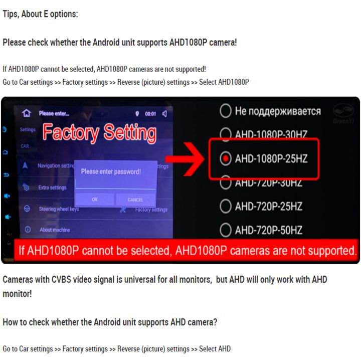 - Camera lùi ô tô AHD có thể tương thích được với tất cả các màn hình trên ô tô tích hợp cổng AV và có độ phân giải 1080P