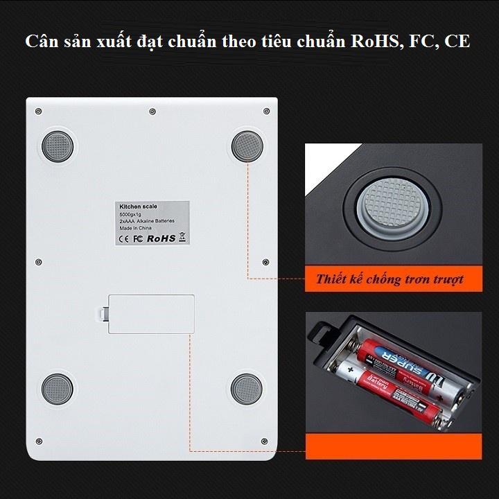 Cân điện tử thực phẩm dùng trong nhà bếp QUA chống nước cân được tới 3kg/0.1g - 5kg/1g. Sạc USB
