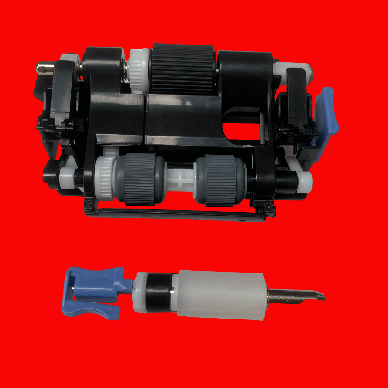 • Thuyết minh: Cao su kéo giấy ( Pickup Roller )nằm trong cụm ADF của máy photocopy, nó có nhiệm vụ kéo rồi đẩy giấy từ cụm ADF của máy xuống để thực hiện các công đoạn tiếp theo của quá trình in ấn và photo. Theo thời gian sử dụng, quả cao su kéo giấy khay ADF dần bị trơ lỳ, độ nhám bị kém đi, cũng như tự lão hóa theo thời gian sử dụng. Lúc này nhiệm vụ kéo giấy của nó không còn thực hiện được nữa. Để công việc in ấn, photo của bạn trở lại như trước, bắt buộc bạn phải thay bộ cao su kéo giấy cụm ADF này.