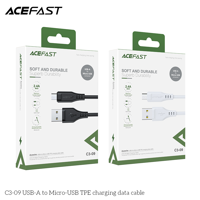 Cáp sạc ACEFAST C3-09 USB-A sang Micro-USB, dòng điện lên đến 2,4A, chiều dài 1,2m, chất liệu TPE Thông số kỹ thuật: - - Chiều dài: 1.2m. Trọng lượng: 29g. - - Chất liệu vỏ