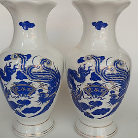✨Cặp Bình hoa - Cặp Lộc bình Long Phượng sứ Cẩm Thạch Bát Tràng 29 cm