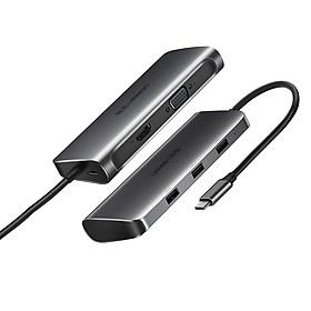 ✨Cáp chuyển đổi USB-C dương Sang 1*HDMI âm, 1* VGA âm, 3*USB 3.0 Vỏ Nhôm có hổ trợ USB-C PD Power cáp dài 25cm màu Xám Ugreen TC50319CM163 Hàng chính hãng.